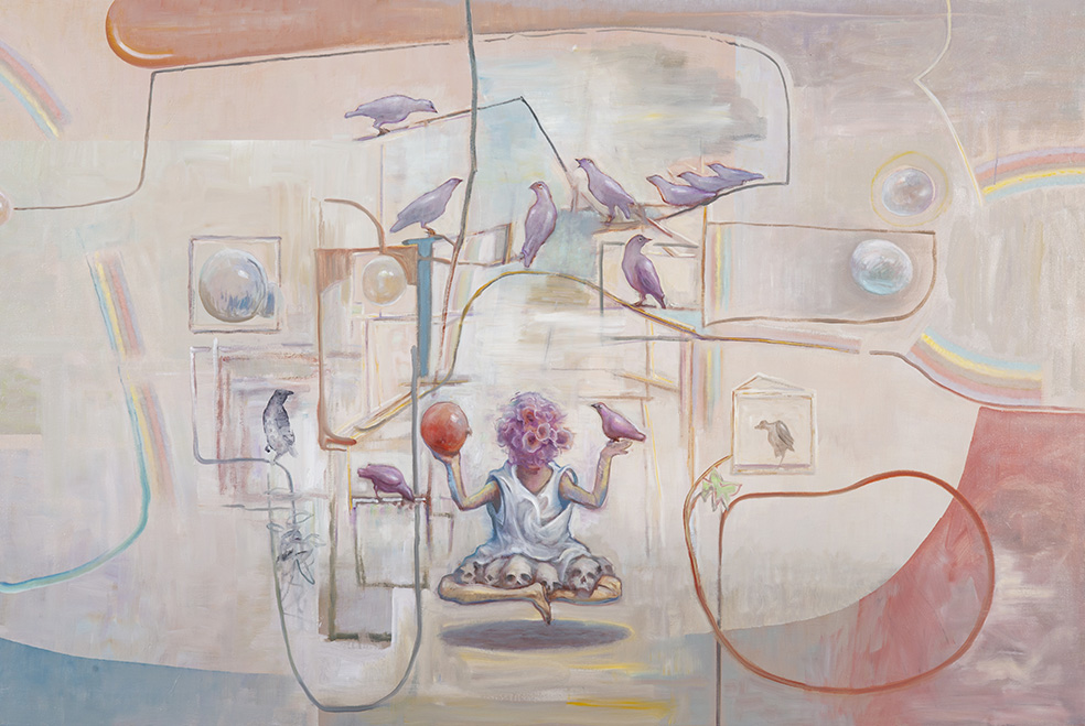 Lequel s’envole plus facilement,2024,huile sur toile,114 x 195cm